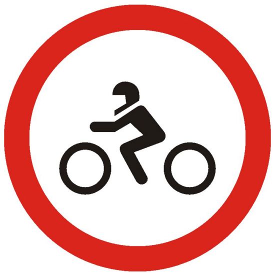 Accesul interzis motocicletelor C4, indicator de interzicere sau restrictie se amplaseaza la intrarea pe drumurile publice pe care accesul motocicletelor este interzis.