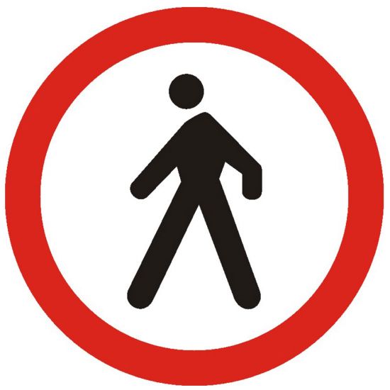 Accesul interzis pietonilor C10, indicator de interzicere sau restrictie interzice accesul pietonilor pe sectorul de drum public pe care este amplasat. Daca indicatorul se afla numai pe una dintre partile drumului, atunci circulatia pietonilor este interzisa numai pe acea parte. Pentru a se interzice accesul pietonilor pe ambele sensuri, se vor instala doua indicatoare, cate unul pe fiecare parte.