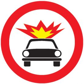 Accesul interzis vehiculelor care transporta substante explozibile sau usor inflamabile C46, indicator de interzicere sau restrictie se monteaza in locul in care accesul vehiculelor care transporta substante explozive sau usor inflamabile este interzis (in general in zonele intens populate sau in zonele unde prezenta unor astfel de substante ar constitui un pericol).