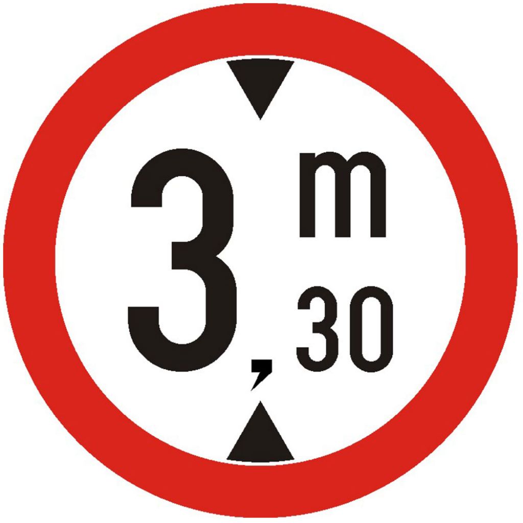 Accesul interzis vehiculelor cu inaltimea mai mare de ... m C17, indicator de interzicere sau restrictie se monteaza pe sectorul de drum cu inaltime mai mica de 5,10 m (capetele podurilor, pasaje inferioare, etc.), precum si in intersectia care il precede. In cel de-al doilea caz, indicatorul este insotit de un panou aditional pe care este precizata distanta pana la locul periculos. Inaltimea inscrisa pe indicator este cu 5 cm mai mica decat inaltimea de libera de trecere asigurata pe sectorul de drum respectiv.