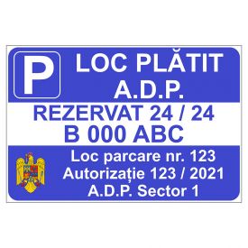 Placuta parcare, loc platit A.D.P., rezervat 24/24, Sigtra, 200x300 mm, PVC, 3 mm