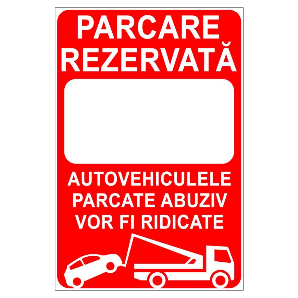 Placuta parcare, parcare rezervata, autovehiculele parcate abuziv vor fi ridicate, Sigtra, 300x400 mm, PVC, 2 mm