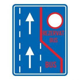 Banda rezervata circulatiei autovehiculelor de transport public de persoane F14, indicator de orientare