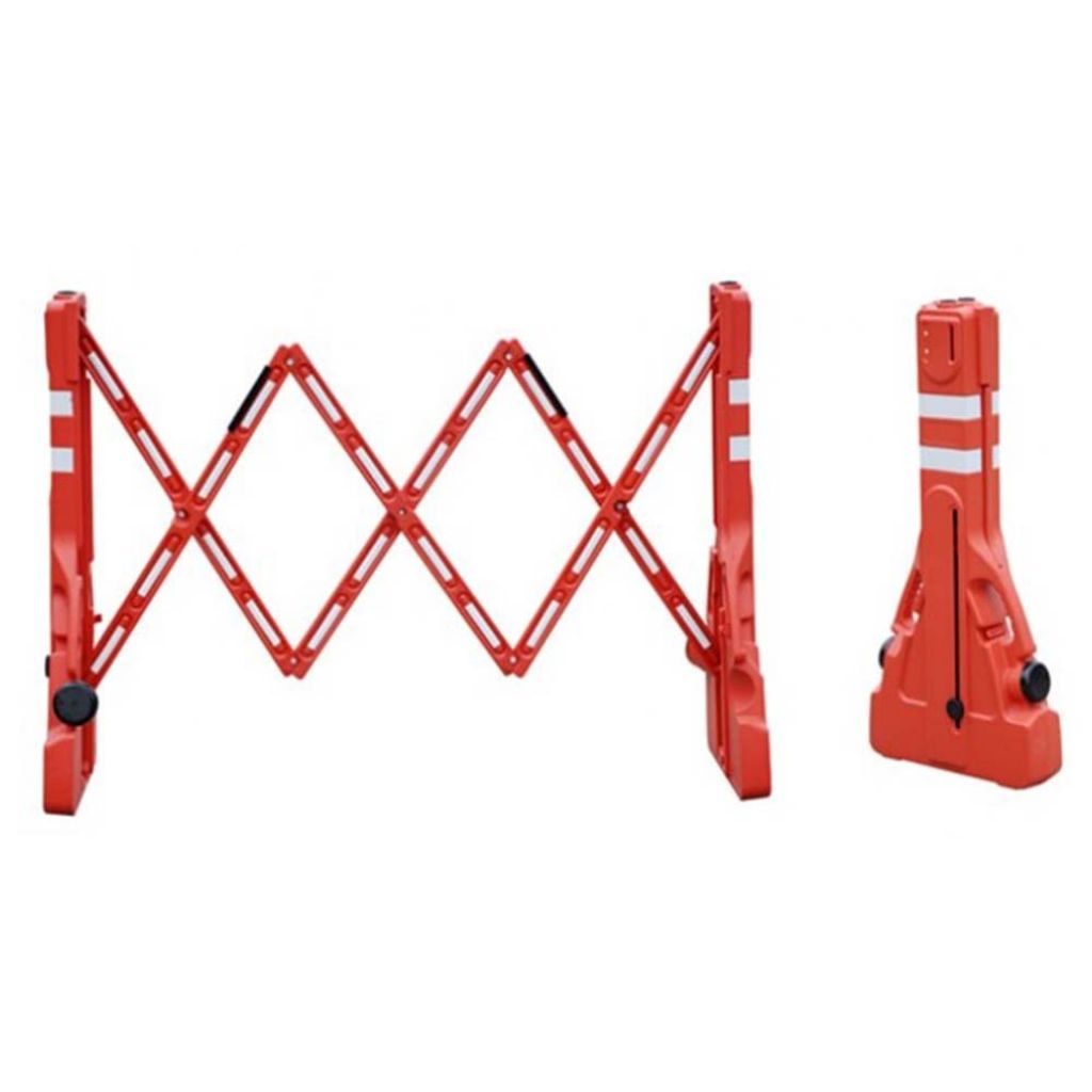 Bariera extensibilă este o construcţie formată din doi stâlpi prevăzuţi cu tălpi pentru stabilirea ansamblului de care este fixat articulat un sistem de bare (la rândul lor articulare), formând paralelograme deformabile. Prin extensia sistemului de bare se poate regla lungimea zonei de lucru protejate.