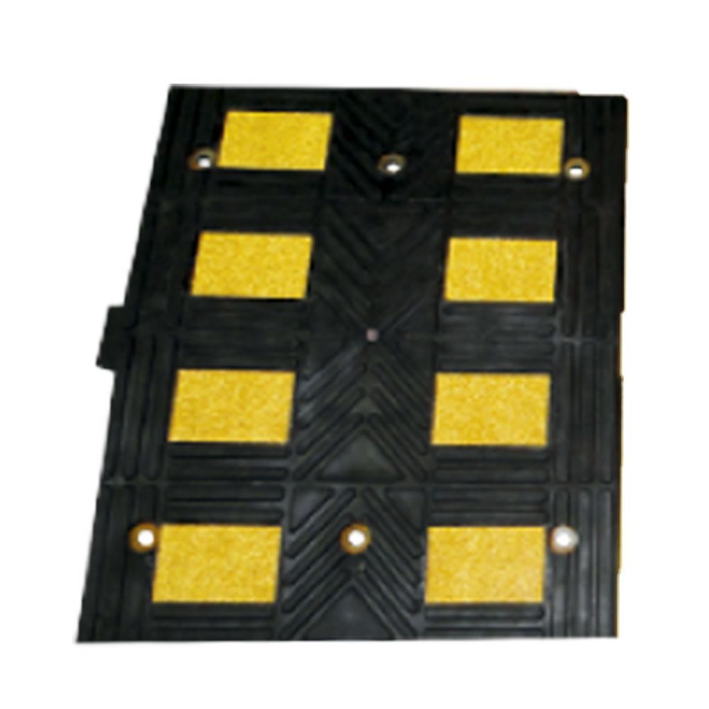 Capac limitator de viteza 600x300x30 mm negru, cauciuc dispozitiv proeminent fata de nivelul drumului realizate din cauciuc vulcanizat avind aplicat segmente de banda reflectorizanta.