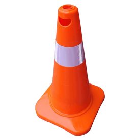 Con pentru trafic, MFK, 500 mm 1.2 kg cu o banda reflectorizanta, PVC, portocaliu se utilizeaza in amenajarile drumurilor, trotuarelor, zonelor de parcare, zonelor in care intrarea vehiculului este interzisa, ca separator de banda pe drumuri, lucrari de intretinere si reparatii temporare ale drumurilor, santiere etc.