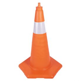 Con pentru trafic, MFK, 750 mm, 2 Kg, o banda reflectorizanta, PVC, portocaliu se utilizeaza in amenajarile drumurilor, trotuarelor, zonelor de parcare, zonelor in care intrarea vehiculului este interzisa, ca separator de banda pe drumuri, lucrari de intretinere si reparatii temporare ale drumurilor, santiere etc.