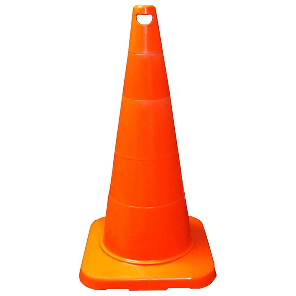 Con pentru trafic, MFK, 750 mm, 3 Kg, fara banda reflectorizanta, PVC, portocaliu se utilizeaza in amenajarile drumurilor, trotuarelor, zonelor de parcare, zonelor in care intrarea vehiculului este interzisa, ca separator de banda pe drumuri, lucrari de intretinere si reparatii temporare ale drumurilor, santiere etc.