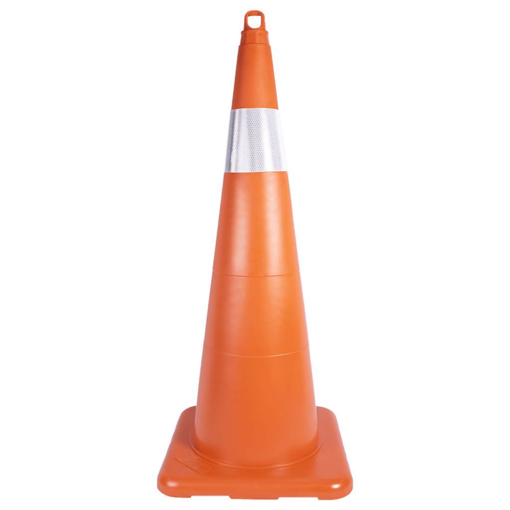 Con pentru trafic, MFK, 900 mm, 3.15 Kg, o banda reflectorizanta, PVC, portocaliu se utilizeaza in amenajarile drumurilor, trotuarelor, zonelor de parcare, zonelor in care intrarea vehiculului este interzisa, ca separator de banda pe drumuri, lucrari de intretinere si reparatii temporare ale drumurilor, santiere etc.