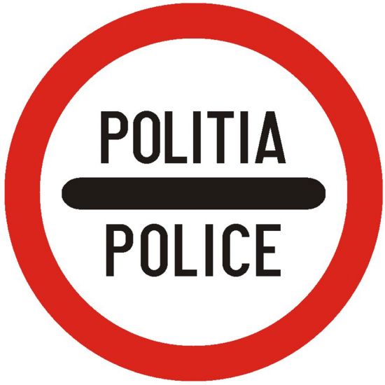 Control politie C34, indicator de interzicere sau restrictie este amplasat inaintea unei zone in care este prezenta politia.