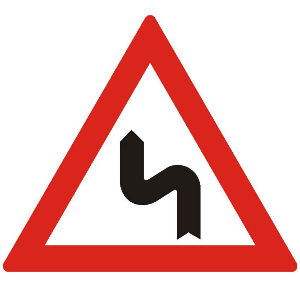 Curba dubla sau o succesiune de mai mult de doua curbe prima la stanga A3, indicator de avertizare se instalează atunci când urmează o succesiune de curbe, dacă distanță dintre acestea e mai mică de 250 m. Se amplasează la 100-200 m înaintea primei curbe. Aceste indicatoare pot fi însoțite și de panouri adiționale, pe care este specificată distanță până la terminarea sectorului de drum periculos, dacă lungimea acestuia depășește 1000 m. Conducatorul trebuie să circule cu viteză redusă în curbe, iar dacă vizibilitatea este redusă, toate manevrele (depășirea, oprirea, staționarea, mersul înapoi, întoarcerea) sunt interzise.
