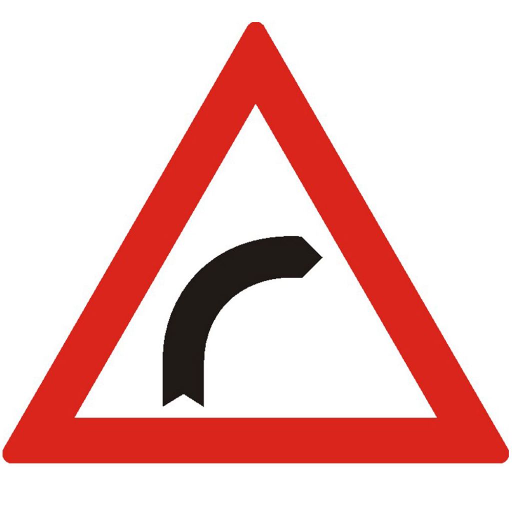 Curba la dreapta A2, indicator de avertizare este amplasat la cel mult 200 m de o curbă la dreapta. Conducatorul trebuie să circule cu viteză redusă în curbe, iar dacă vizibilitatea este redusă, toate manevrele (depășirea, oprirea, staționarea, mersul înapoi, întoarcerea) sunt interzise.