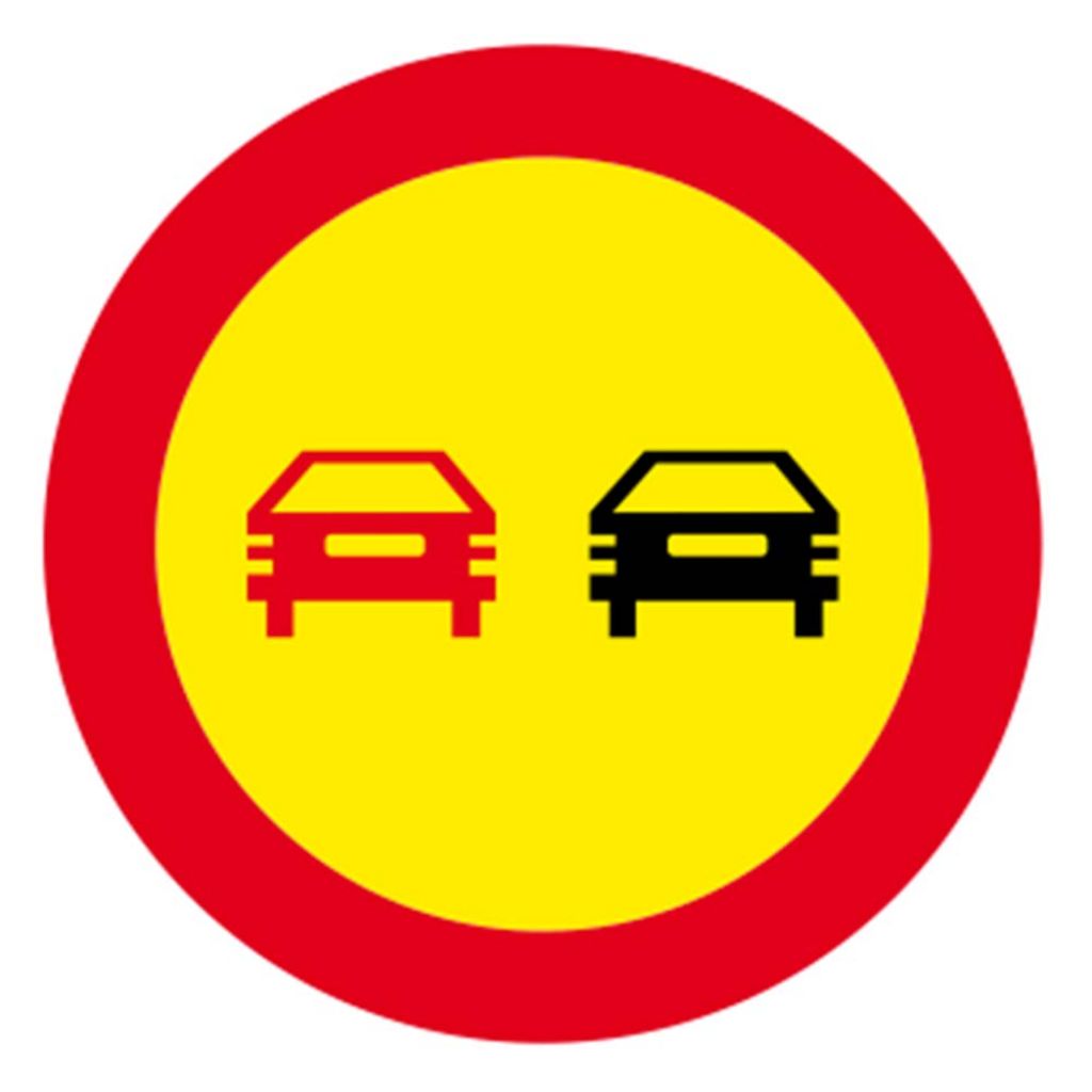 Se întâlnește pe sectoarele de drum unde se execută lucrări pe partea carosabilă, iar depășirea autovehiculelor, cu excepția motocicletelor fără ataș, este interzisă.