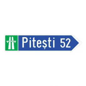 Acest indicator se amplasează în intersecții pentru a informă conducătorii auto asupra direcției pe care trebuie să o urmeze pentru a ajunge la localitatea inscripționata pe indicator.