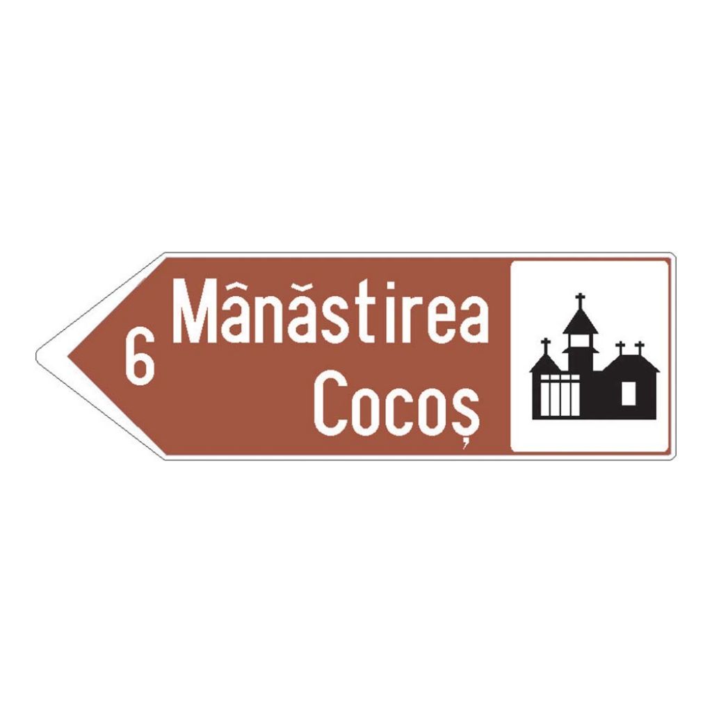 Directia spre obiectivul turistic F34, indicator de orientare.