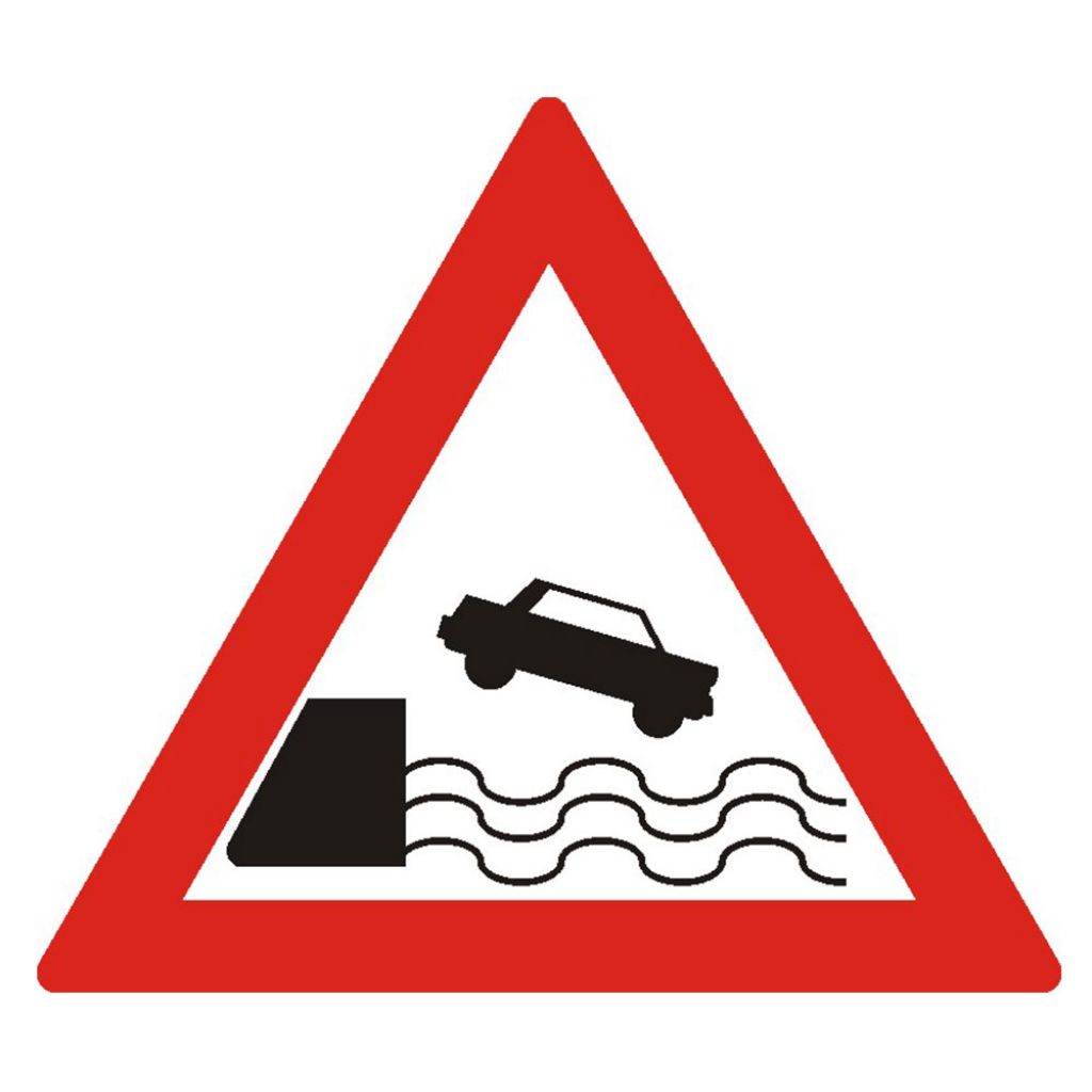 Iesire spre un chei sau mal abrupt A16, indicator de avertizare se amplasează la 100-200 m de chei sau mal abrupt pentru a atenţiona Conducătorul auto că, pe direcţia înainte, drumul se termină deasupra cheiului sau malului abrupt.