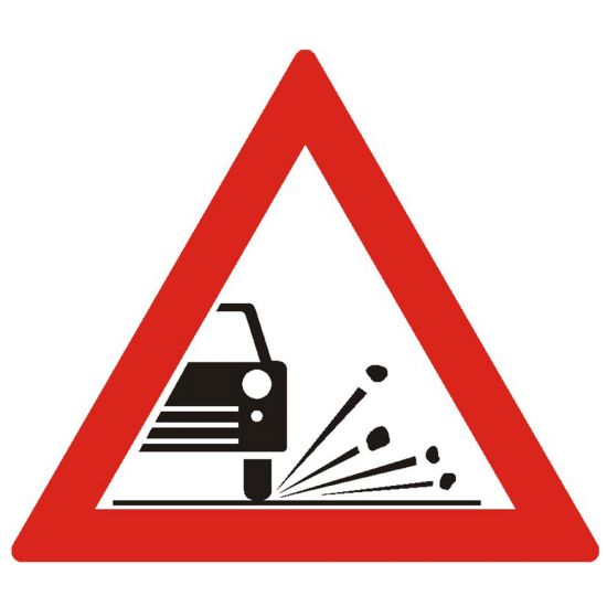 Improscare cu pietris A20, indicator de avertizare se amplasează la 100-200 m de sectorul de drum periculos. Poate fi însoţit de indicatorul Interzis autovehiculelor de a circula fără a menţine între ele un interval de cel putin ? m, deoarece exista riscul ca pietrişul de pe partea carosabilă să fie aruncata de roţile vehiculului către ceilalţi participanţi la trafic. La întâlnirea acestui indicator, Conducătorul auto este obligat să reducă viteza şi să păstreze o distanţă faţă de vehiculul care circulă în faţa sa.