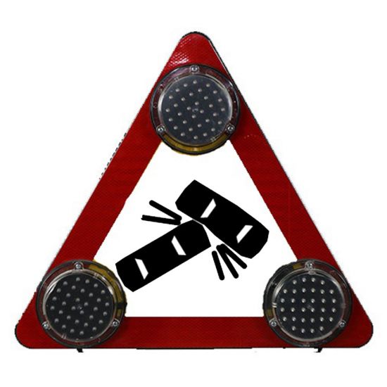 Indicator cu LED-uri Accident Acest tip de indicator cu LED-uri Accident este folosit pentru atenționarea de la distantă asupra existenței unor accidente. Indicator cu LED-uri Accident este folosit pentru atenționarea de la distantă asupra existenței unor zone cu lucrări sau accident. Acesta contine indicatorul rutier "Accident" fig. A33, care este un triunghi cu o latura de 700mm si o grosime de 2mm. Fata indicatorului este confectionata din folie reflectorizanta clasa 1 - 3M pe care este realizat inscrisul respectiv prin serigrafie. Cutia cadru in care este fixat dispozitivul de alimentare al lampilor este confectionata din tabla de aluminiu, cu grosimea de 2mm. Aceasta este protejata anticorziv prin vopsire in camp electrostatic cu vopsea de culoare gri. Forma, dimensiunile si inscriptionarea indicatorului rutier sunt realizate in conformitate cu SR 1848/2011. În colțuri sunt prevăzute cu lămpi cu leduri care sunt vizibile de la mare distantă. Fiecare lampa este prevazuta cu cate 16 LEDuri. Dispozitivul electronic asigura alimentarea si comanda lampilor cu lumina intermitenta prin cuplarea acestora la mufa dispozitivului. La aceeasi mufa se cupleaza si cablul de alimentare, in care incarcarii acumulatorului. Panoul de comandă conține acumulatori, este detașabil și se incărca de la o sursă de tensiune de 220 V. Acumulatorul are o capacitate de 7Ah si asigura o autonomie de alimentare de 20 ore. Secventa si frecventa de aprindere a lampilor, fie ca este simultan sau intermitent, poate fi selectata dupa preferinta fiecarui client. Gradul de protectie electrica este IP 56. Durata de incarcare a acumulatorului este de minim 6 ore. In cazul in care dispozitivul ramane conectat la reteaua de alimentare un timp mai mare decat cel necesar reincarcarii complete a acumulatorului, incarcare acumulatorului este oprita automat prin intermediul circuitului electronic de pe plata electronica a dispozitivului. Cablul de alimentare are la un capat mufa pentru cuplarea la dispozituvul de alimentare si la celalalt stecherul pentru alimentarea de la reteaua electrica (priza de 220V).