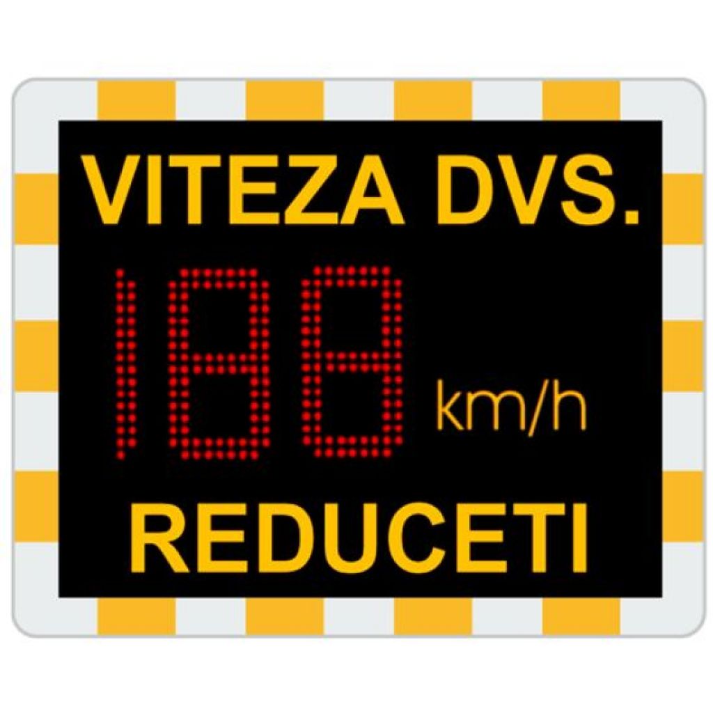 Panou de viteza cu radar incorporat si alimentare de la iluminatul public noaptea iar ziua din acumulator cu incarcator, 585x585 mm