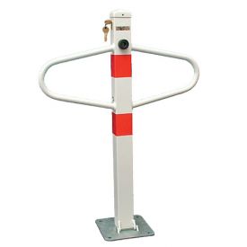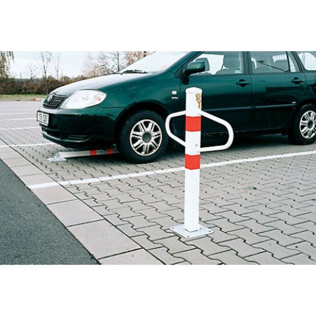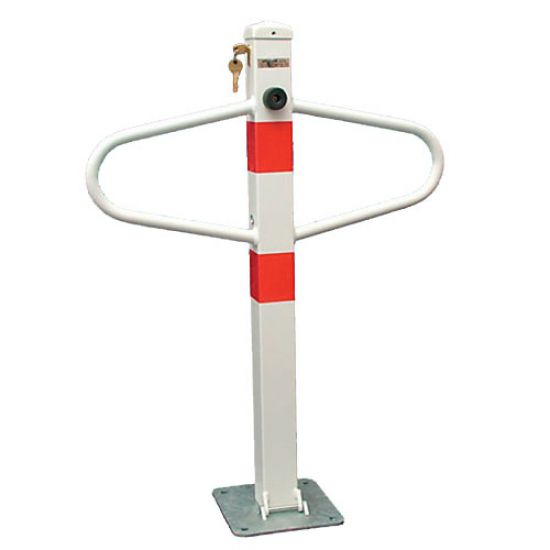 Ingradire pentru parcare cu cheie - arc rabatabil ALB comaxit este o constructie stabila de otel cu soclu sau talpa (190 × 190 mm) zincata la cald, cu posibilitate de fixare cu dibluri de beton, asfalt, etc.