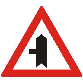 Intersectie cu un drum fara prioritate A37, indicator de avertizare se instalează pe drumul cu prioritate in intersecţiile din afara localităţilor. Conducătorii de vehicule care întâlnesc indicatorul au prioritate de trecere iar cei care circulă pe drumul transversal vor întâlnii unul dintre indicatoarele: "Cedează trecerea" sau "Oprire". Oprirea, stationarea, mersul inapoi intoarcerea sunt interzise cu 25m inaintea intersectiei ori in zona de preselectie unde sunt aplicate marcaje cu linie continua. Depasirea si intoarcerea sunt permise in intersectie. Pe timpul noptii si in conditii de vizibilitate redusa la apropierea de intersectie, conducatorii de autovehicule sunt obligati sa schimbe alternant lumina de intalnire cu cea de drum.