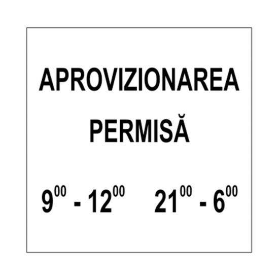Intervalul de timp cand este permisa stationarea vehiculelor ce efectueaza aprovizionarea P19, panou aditional.