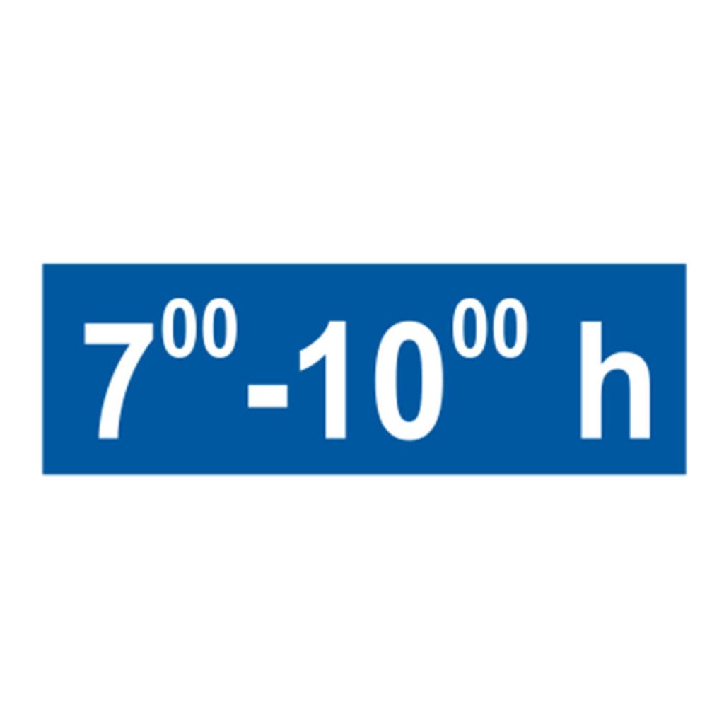Specifică intervalul orar, între care se respectă regulile impuse de indicatorul rutier sub care este amplasat panoul din imagine.