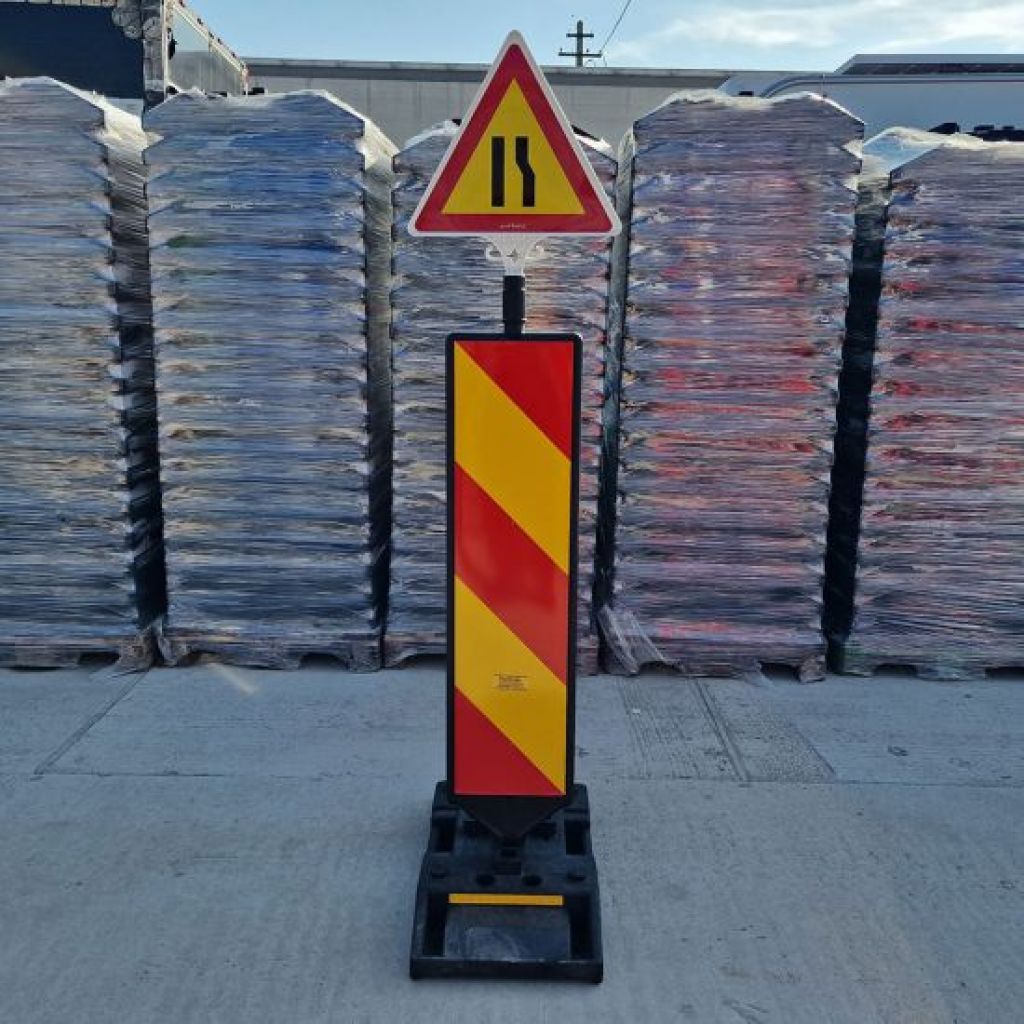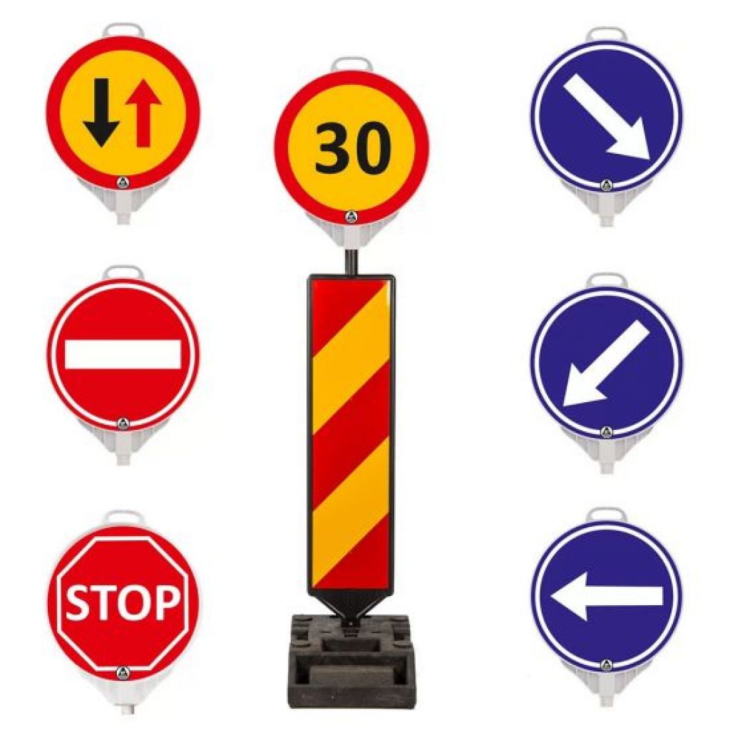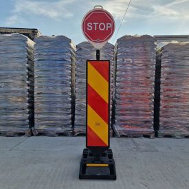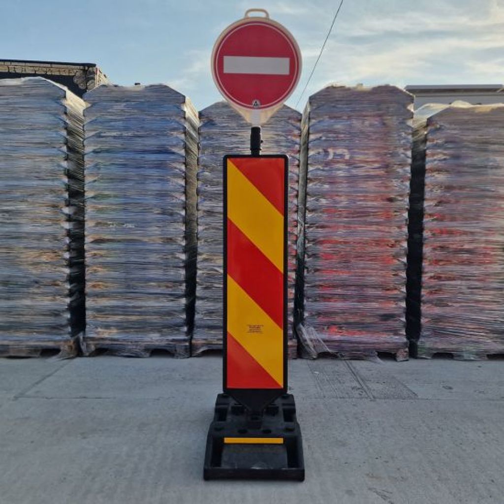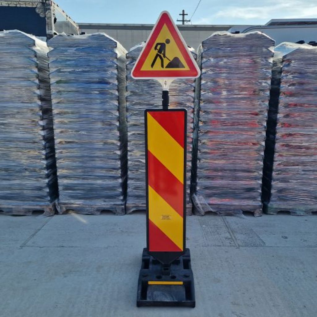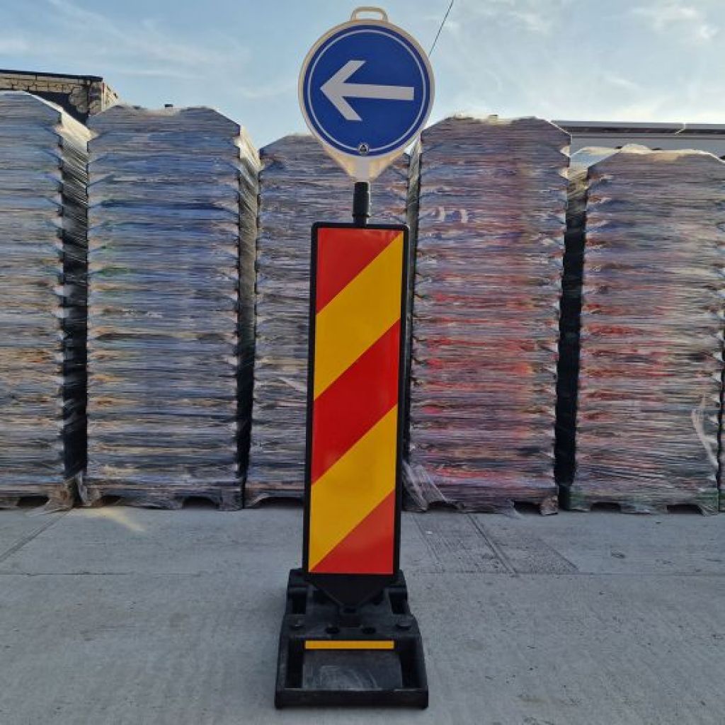 Set baliza semnalizare, folie cl 2, baza 15 kg, cu indicator rotund sunt echipate cu indicatoare rotunde cu diferite semne ce au aplicata folie reflectorizanta.