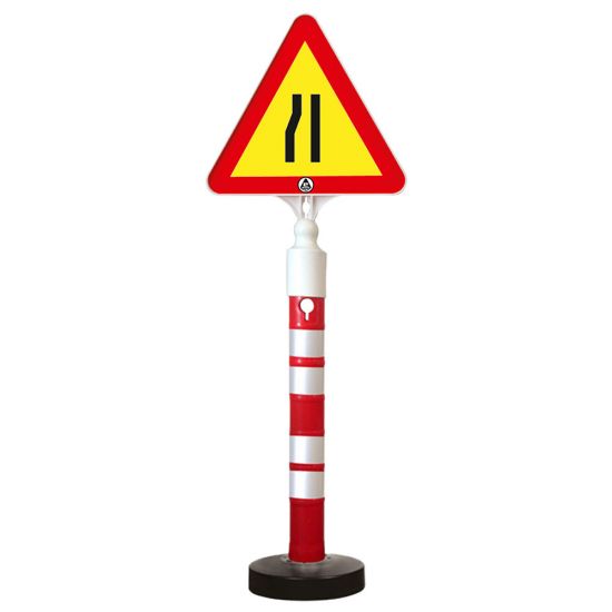 Kit indicator rutier mobil, Sigtra, stalp cu baza grea, indicator drum ingustat pe partea stanga.
