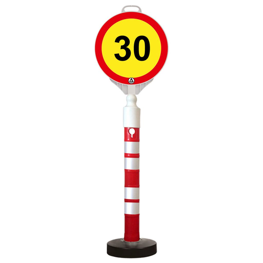 Kit indicator rutier mobil, Sigtra, stalp cu baza grea, indicator limitare de viteza 30 km.