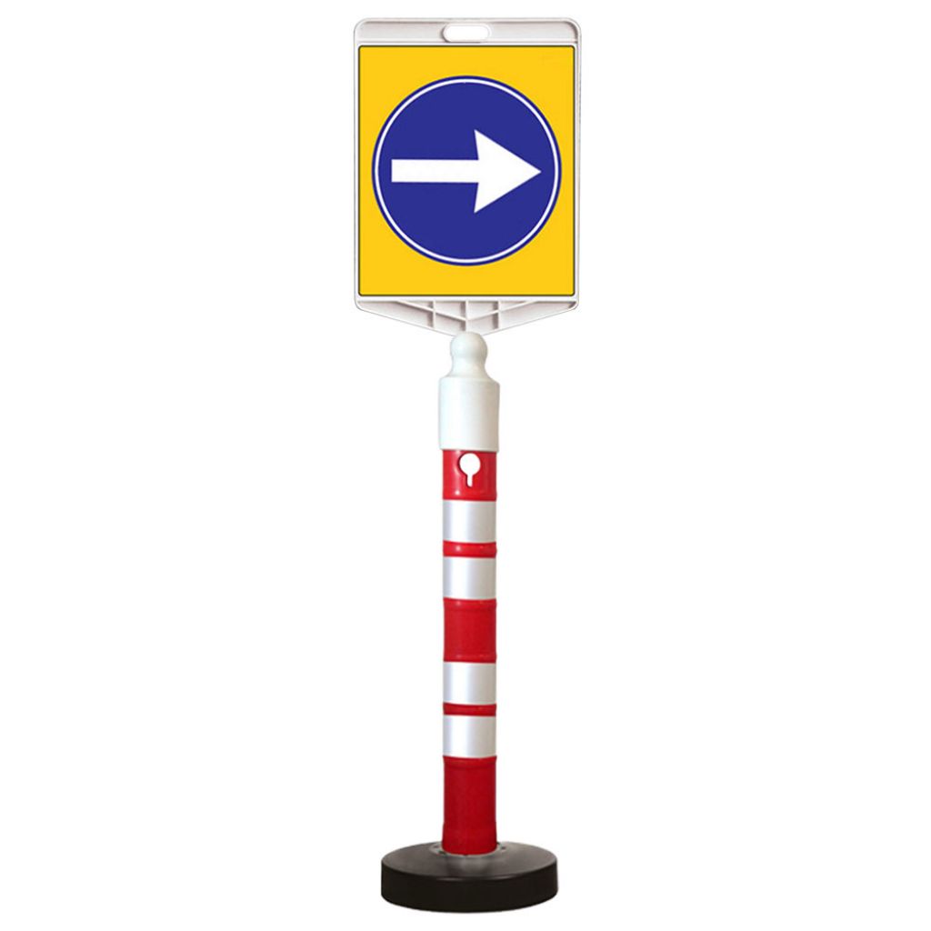 Kit indicator rutier mobil, Sigtra, stalp cu baza grea, indicator obligatoriu la dreapta.
