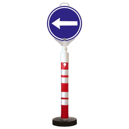 Kit indicator rutier mobil, Sigtra, stalp cu baza grea, indicator obligatoriu stanga fata-verso.