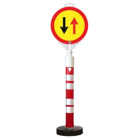 Kit indicator rutier mobil, Sigtra, stalp cu baza grea, indicator prioritate pentru circulatia din sens invers.