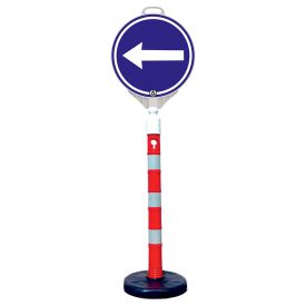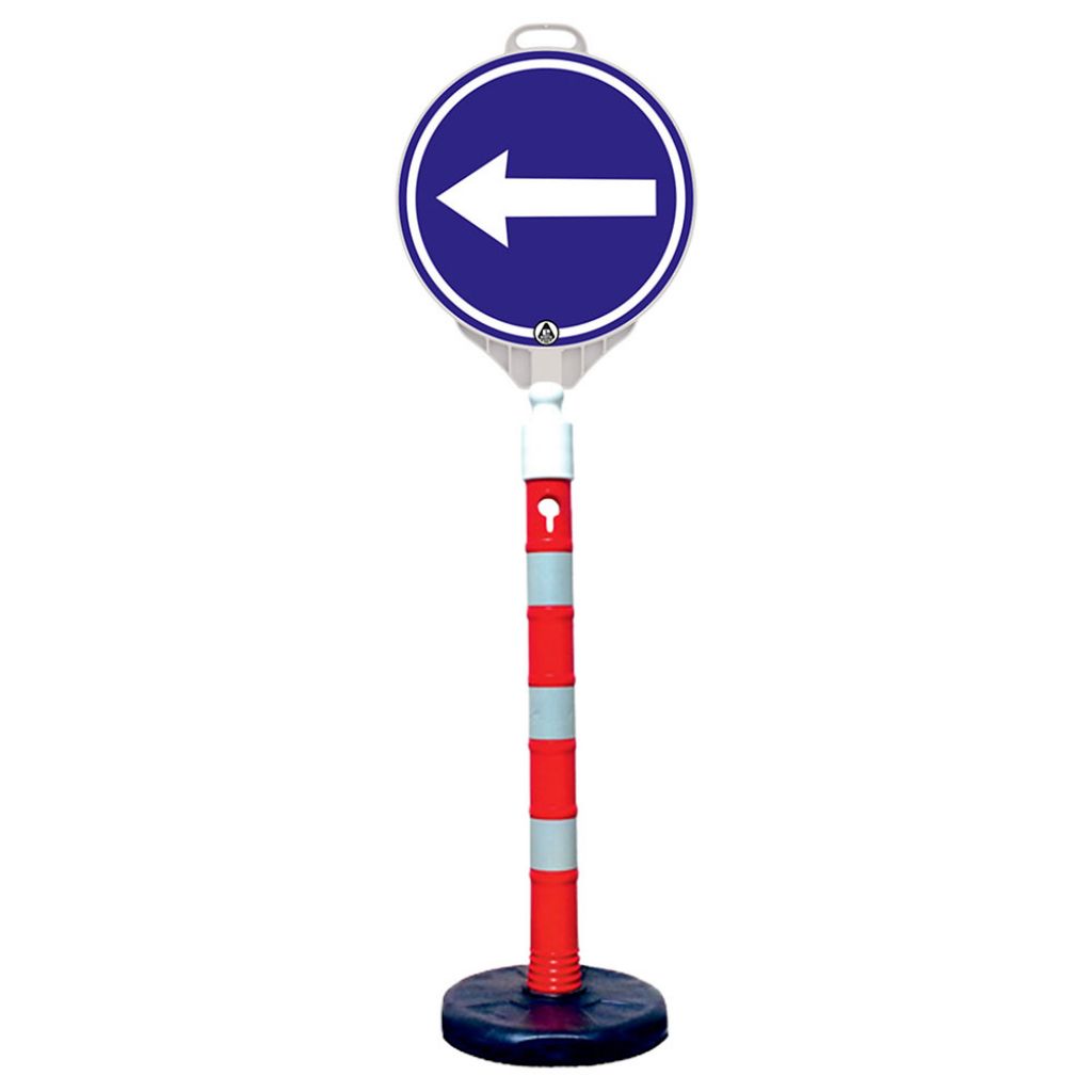 Kit indicator rutier mobil, Sigtra, stalp cu baza usoara, indicator obligatoriu stanga fata-verso.