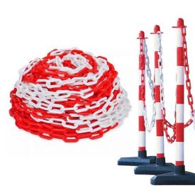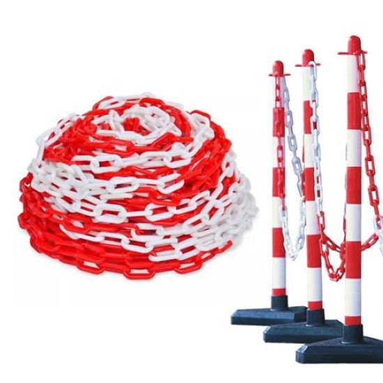 Lant plastic Alb Rosu 3 m folosit la delimitarea zonelor cu lucrări, a parcărilor dar și în scop ornamental.
