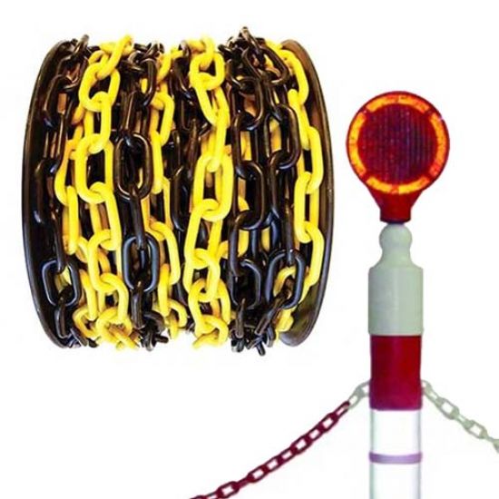 Lant plastic Galben Negru 25 m folosit la delimitarea zonelor cu lucrări, a parcărilor dar și în scop ornamental.