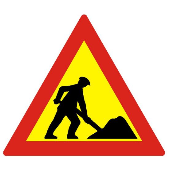 Lucrari A27, indicator de avertizare se instalează la o distanta de 20-200 m de sectorul de drum pe care se execută lucrări. Fondul de culoare galbena semnifică caracterul temporar al lucrării. La întâlnirea acestui indicator, Conducătorul auto este obligat să reducă viteza.