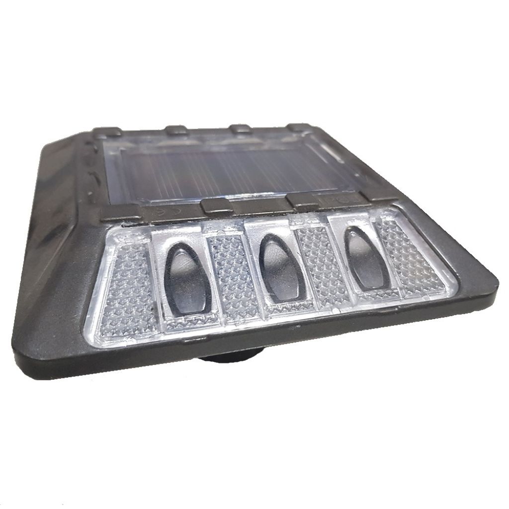 Material: aliaj de aluminiu și policarbonat Dimensiunea piesei: 133X123x20mm, Arbore: 55mmX40mmØ, Greutate: 600g Alimentare: celulă solară Depozitare de energie: Baterie LED: 4 buc super luminos LED: Ø8mm, 6000-8000mcd Mod Lumina: Constant / Flash Distanța de vizualizare: mai mult de 1000m Activare automată On/Off prin senzor de lumină, care funcționează după lasarea întunericului Cu o incarcare completă poate continua să lucreze aproximativ 100 de ore IP Rating: IP68 Rezistența la compresiune: mai mult de 10 tone Rezistența la căldură: -40 ° C până la + 80 ° C