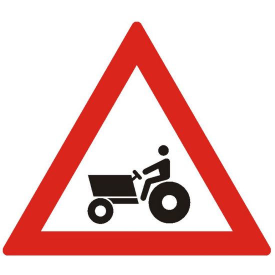 Masini si utilaje agricole A53, indicator de avertizare este amplasat pentru a atenţiona Conducătorul de vehicul care îl întâlneşte, că drumul poate fi traversat de maşini şi utilaje agricole. La întâlnirea acestui indicator, Conducătorul auto este obligat să reducă viteza şi să circule cu atenţie sporită.