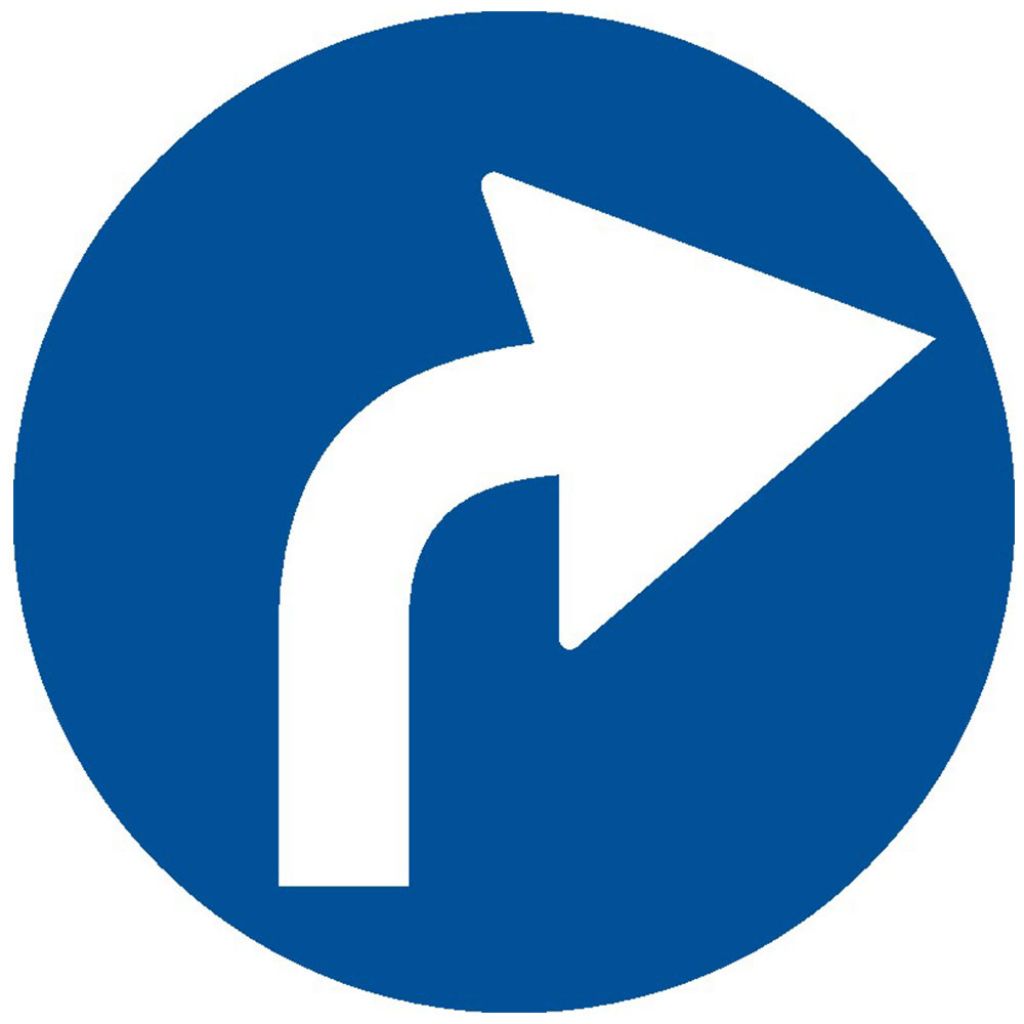 Obligatoriu la dreapta D3, indicator de obligare se amplaseaza inaintea intrarii intr-o intersectie, obligand conducatorul auto sa vireze pe directia indicata de sageata, dupa ocolirea indicatorului. Zona de actiune a acestui indicator o constituie intersectia inaintea careia este instalat.