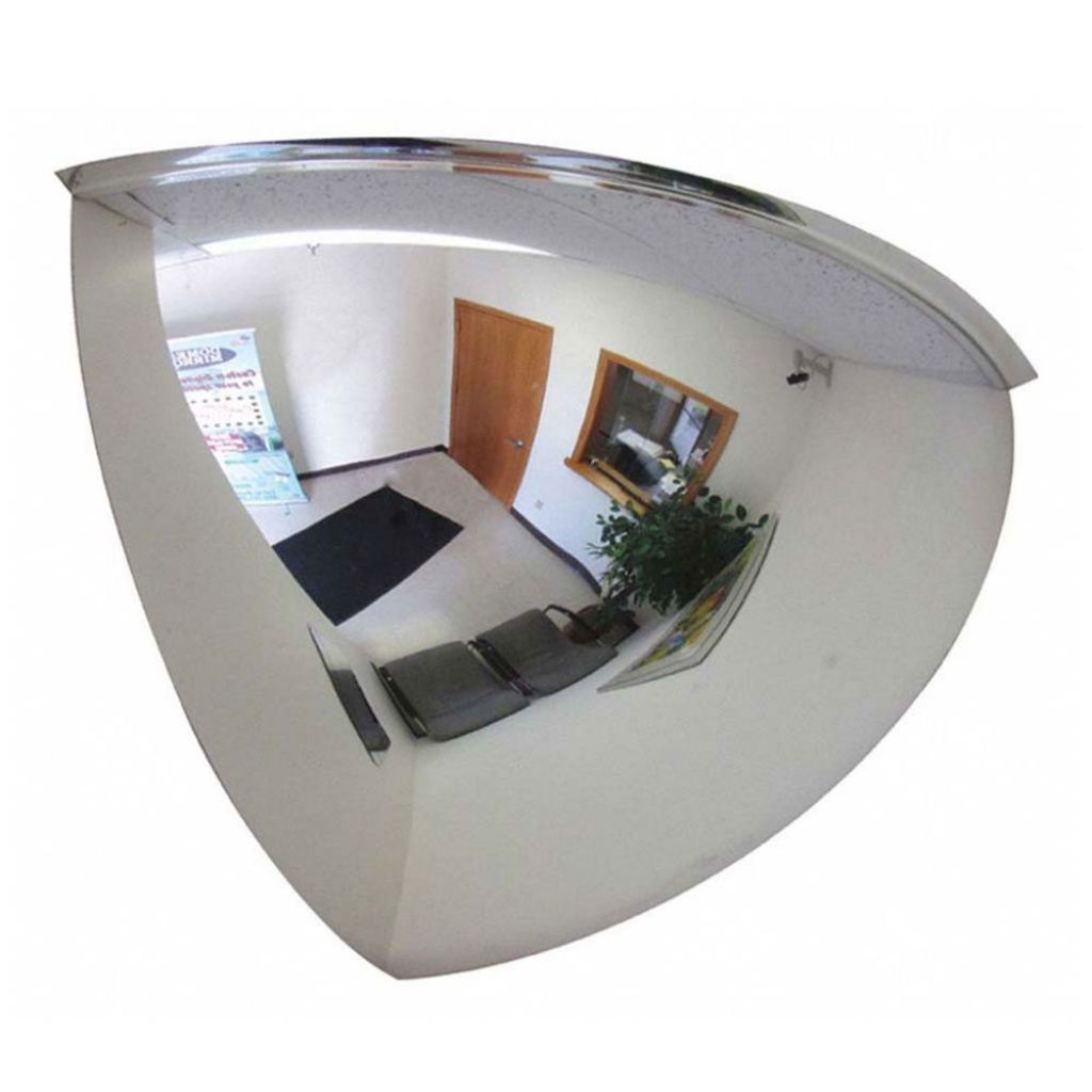 Oglinda cupola 90 grade cu diametru 600 mm, de interior, 90 grade, oglinda 1/8 sfera este o parte din sfera, care asigura o revizuire si supraveghere foarte buna.