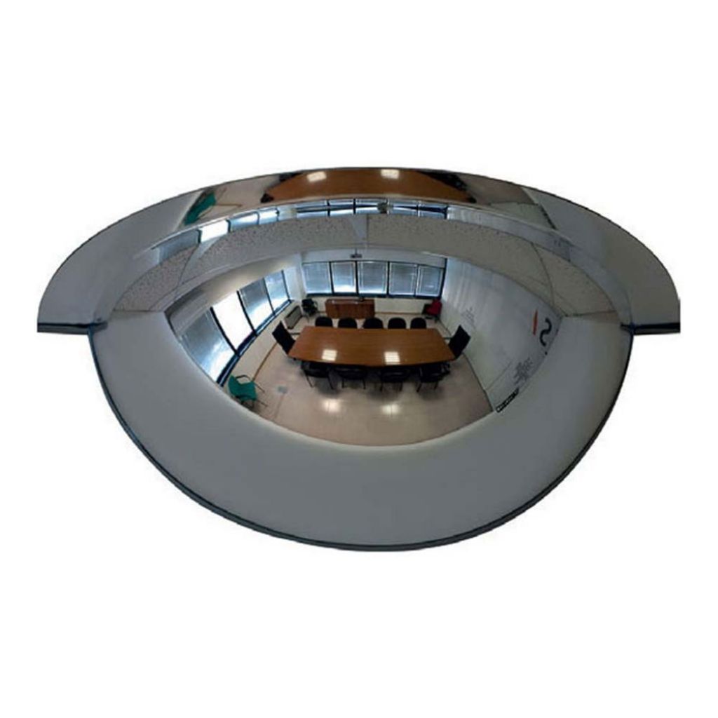 Oglinda cupola 180 grade cu diametru 900 mm, de interior, 180 grade, oglinda 1/4 sfera utilizata pentru a oferi viziune allround pentru siguranta maxima in fabrici si depozite. Pot fi montate pe perete sau suspendate de tavan.