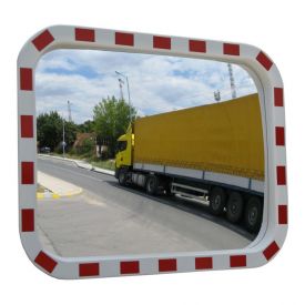 Oglinda rutiera dreptunghiulara cu dimensiune 600x800 mm, cu bordura rosu-alb, de exterior se foloseste cu mare succes pentru sporirea vizibilitatii.