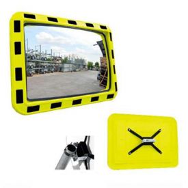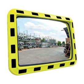 Oglinda rutiera industriala dreptunghiulara dimensiune 800x600 mm cu bordura galben-negru este confectionata din materiale plastice tratate pentru a asigura rezistenta mare la impact, intemperii, razele UV si praf.