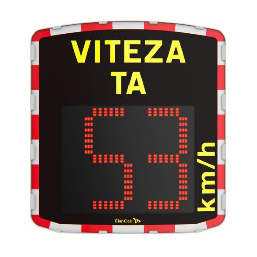 Panou de viteza cu radar incorporat si alimentare de la iluminatul public noaptea iar ziua din acumulator cu incarcator, 585x585 mm