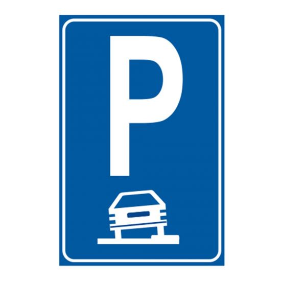 Are rolul de al informa pe conducătorul de vehicul că, în apropiere se află un loc special amenajat pentru parcare. Pe indicatorul rutier se specifică că, parcarea se va face cu două roți pe bordură.