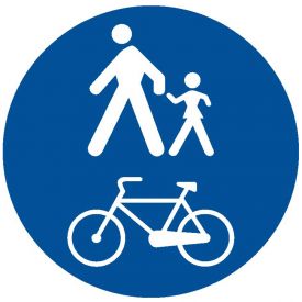 Pista comuna pentru pietoni si biciclete D19, indicator de obligare se întâlneste pe partea carosabilă sau chiar pe trotuar, unde există o pistă comună pentru pietoni și biciclete. În zona respectivă este permisă doar circulația bicicletelor și a pietonilor.