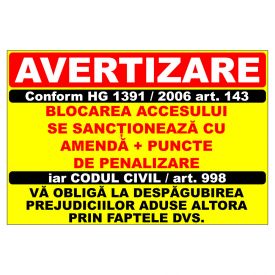 Placuta parcare, avertizare, blocarea accesului se sanctioneaza cu amenda si puncte de penalizare, Sigtra, 200x300 mm, PVC, 1 mm