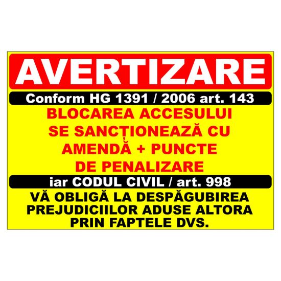 Placuta parcare, avertizare, blocarea accesului se sanctioneaza cu amenda si puncte de penalizare, Sigtra, 200x300 mm, PVC, 2 mm