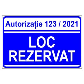 Placuta parcare, autorizatia numar, loc rezervat, Sigtra, 200x300 mm, autocolant vinyl, 0.07 mm